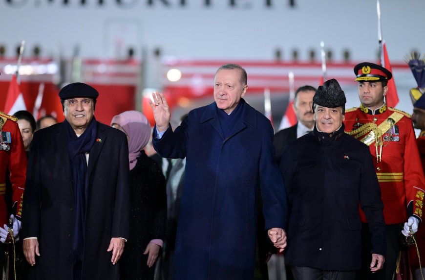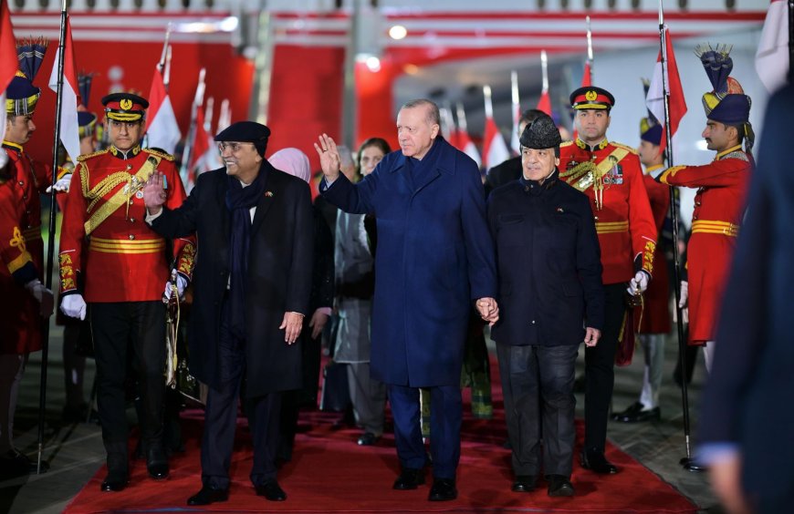 President Asif Ali Zardari and Prime Minister Muhammad Shehbaz Sharif welcomed Erdogan at Nur Khan Airbase in Rawalpindi. A ceremonial 21-gun salute marked his arrival, and Pakistan Air Force jets escorted his aircraft as it entered the country’s airspace.
